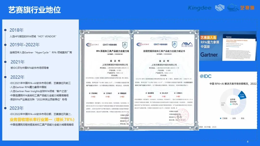 藝賽旗高級解決方案顧問申穎參加了本次會議,并發表了《智能機器人iS-RPA助力企業數字化轉型》的演講,為大家分享了RPA技術在(zai)企業(ye)數字(zi)化(hua)轉型(xing)中(zhong)的(de)(de)應用,以及藝賽旗RPA在(zai)企業(ye)數字(zi)化(hua)轉型(xing)中(zhong)的(de)(de)卓越表現(xian)。