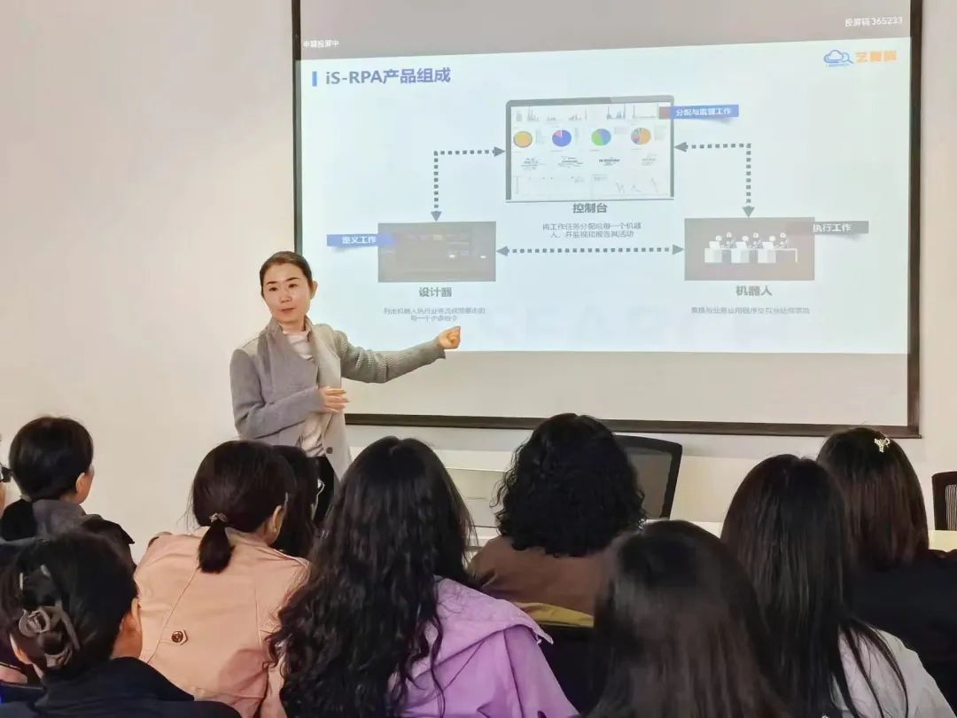 在接待團隊的帶領下(xia),學員們首先來到(dao)了(le)藝賽(sai)旗RPA沉浸體驗式展廳,市場(chang)部總監徐非同進行了(le)現場(chang)演示和詳細(xi)解(jie)(jie)說,向(xiang)學員們(men)展(zhan)示了iS-RPA產品,使學員們(men)對藝賽旗超自動化產品矩陣和實踐案(an)例有了更直觀的了解(jie)(jie)。